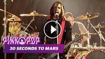 Thirty Seconds to Mars (also known as 30 Seconds to Mars or 30STM) is an American rock band, fronted by actor Jared Leto. Thirty Seconds to Mars was founded in 1998 by Jared Leto and his brother Shannon Leto. Over the years, the line-up of the band changed several times. Besides the Leto brothers, the only permanent band member is currently Tomo Milicevic. Since the departure of bassist Matt Wachter, who left the band for personal reasons, the band is supplemented by bassist Tim Kelleher at live concerts. Although Leto is a well-known Hollywood actor, he does not want to use this fame to promote his band. For example, the band even refuses to play in places that use Leto's fame to promote the show. The first album, 30 Seconds to Mars, produced by Bob Ezrin, was released in 2002. The second album, A Beautiful Lie, was released in 2005 and was more successful than the first album and marked the band's international breakthrough. The album was produced by Josh Abraham, who has also worked with Linkin Park, Orgy and Velvet Revolver. Because A Beautiful Lie was leaked five months before the release date, the band decided to add two bonus tracks: Battle of One and Hunter (a cover of Björk). To promote the album even further, the band did 'golden passes' in a few albums, which give the owner of the CD access to concerts of 30 Seconds to Mars, where they are also allowed to go backstage. The album was certified platinum in the United States in December 2006. On August 31, 2006, the band won an MTV2 Award for The Kill at the MTV Video Music Awards in the United States, one of two nominations. At the MTV Europe Music Awards in November 2007, the band won the award for best rock band. The band also caused a stir by being the first American band ever to record a clip in China for the single From Yesterday. For a while, the clip was wrongly known as the most expensive music video ever ($13,000,000). In an interview with TMF VJ Saar Koningsberger, Leto denied this. For the last single from the album, title track A Beautiful Lie, the band traveled to Greenland to record the accompanying video. The clip is a mini-film in which attention is paid to combating the enhanced greenhouse effect. On December 4, 2009, the band released their third studio album, This Is War. The album was released later than planned due to contractual conflicts with label EMI. In October, the first single Kings and Queens was released, with the American radio premiere on October 6 and the digital release on October 13, 2009. The accompanying video clip is a mini-film directed by Leto in which a large group of people cycle through the streets of Los Angeles at night. On September 20, 2010, the band won a VMA for the video Kings and Queens. On Monday, May 9, 2011, Leto announced that he would stop 30 Seconds to Mars for a while.