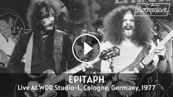 At the time of this first appearance in 1977, the band stand between two albums. This was after Outside the Law (MIG 00292 CD), and after the post-USA split. Cliff had returned from his road trip to Kathmandu, and it was time get back to work. It was the original line-up again, but there was a big bust up, and Jim McGillivray left. Then came the phone call from Rockpalast, and Fritz Randow was pulled in to do drums. With just two weeks for Fritz to become the new EPITAPH drummer, the band hired a studio and practised daily. While Jim had a massive drum kit, Fritz had a very small, Phil Collins-style kit, because he was a great Phil Collins fan, with an 18-inch bass drum the size of Jim’s stand tom.