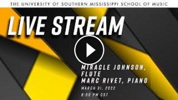 Non-degree flute recital performed by Miracle Johnson accompanied by collaborative pianist Marc Rivet.