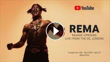 Watch Rema's Ravage Uprising show live from The O2, London globally on YouTube. From 21.00GMT, on 14 Nov 2023 fans around the world will experience an amazing concert from the Rave Lorde.
